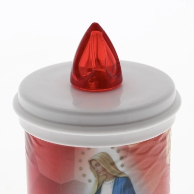 Lumino votivo elettronico, immagine Madonna Immacolata, con durata 120 giorni di fiamma rossa fissa e continuativa. Le batterie sono incluse e NON sono sostituibili. Semplice ed economico, usa e getta. Prodotto da un'azienda italiana con elevata competenza nel settore.