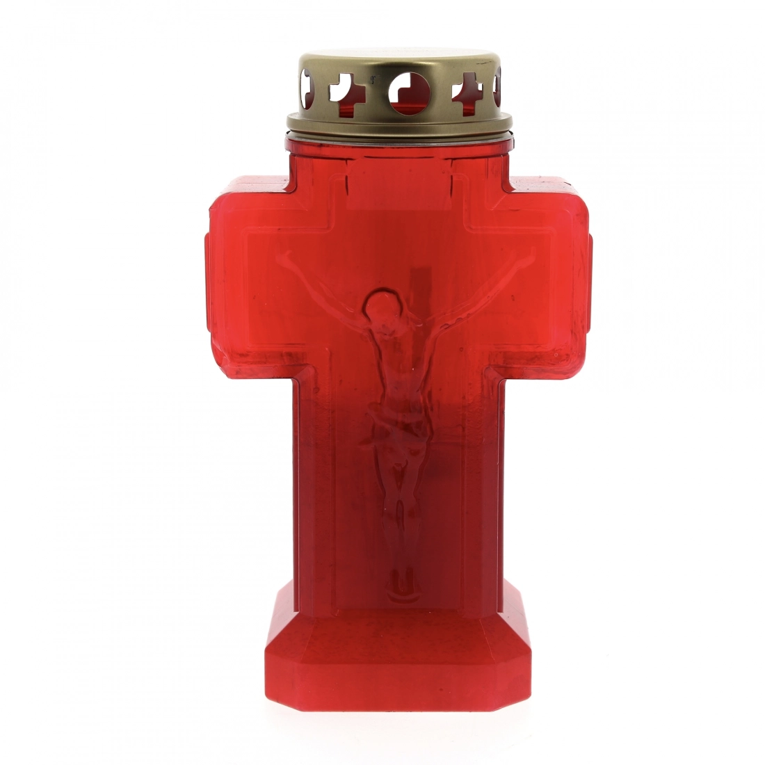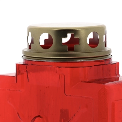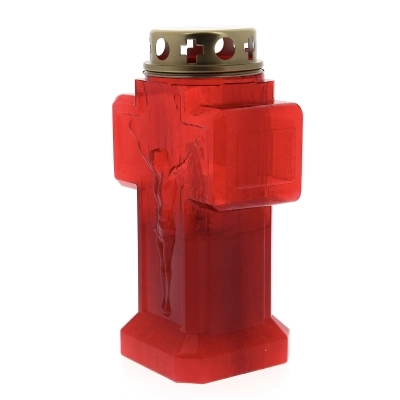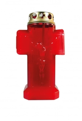 Lumino votivo elettronico, a forma di croce rossa, con stilizzato il corpo di Gesù. Ideale da posizionare al cimitero oppure in casa davanti ad un'immagine sacra. Ha una luce rossa fissa e continua, il lumino è usa e getta, ma con una lunga durata di un anno intero. Le batterie sono incluse. Prodotto da un'azienda italiana con elevata competenza nel settore.