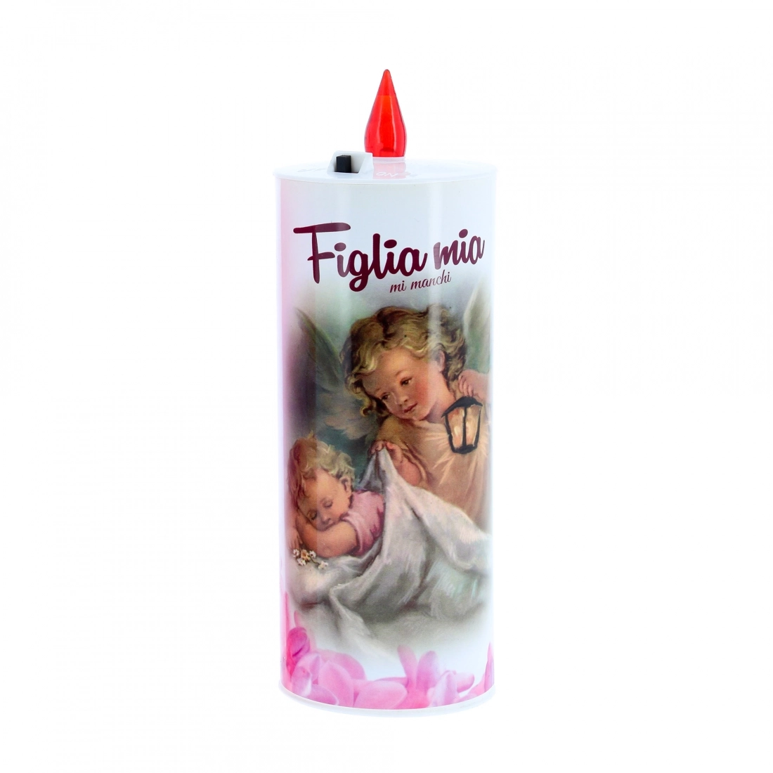 Lumino votivo elettronico Figlia, con durata 150 giorni di fiamma rossa fissa e continuativa. Le batterie sono incluse e NON sono sostituibili. Semplice ed economico, usa e getta. Prodotto da un'azienda italiana con elevata competenza nel settore.