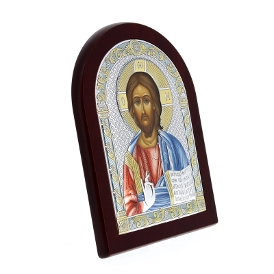 Icona Cristo Pantocratore su legno, in argento. Dimensioni 12x16 cm