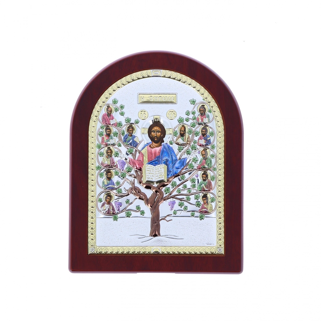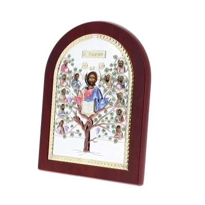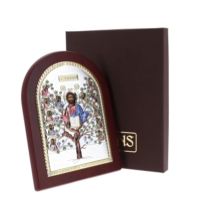 Preziosissima icona, posta su un supporto in legno noce, realizzata in argento Mirò e con i colori tipici dell'iconografia bizantina. L'icona raffigura l' Albero della Vita che simboleggia la connessione tra il cielo e la terra, la vita e la morte, e l'eterna rinascita. L'albero è stilizzato e decorato con frutti, fiori e foglie, che possono simboleggiare la fertilità e l'abbondanza. Inoltre, l'albero è talvolta collocato in contesti che richiamano il Giardino dell'Eden, sottolineando l'idea di un paradiso perduto e la speranza di redenzione. L'albero della vita, quindi, non è solo un elemento decorativo, ma un simbolo ricco di significato che invita alla riflessione sulla spiritualità e sulla connessione tra l'umano e il divino. L'icona può essere appesa, ma anche appoggiata grazie al piedistallo incluso nella scatola. Rifinita a mano e curata nei dettagli. Realizzata completamente in Italia da un'azienda leader nella produzione di quadri in argento.