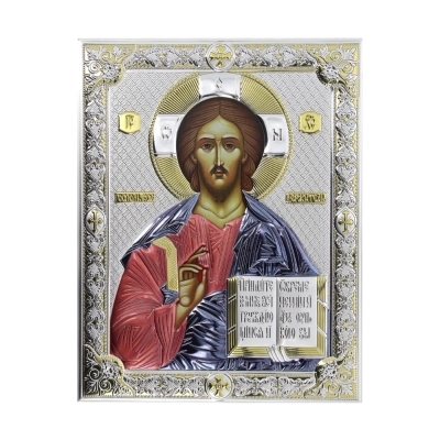 Icona Cristo Pantocratore, in argento. Dimensioni 16x20 cm