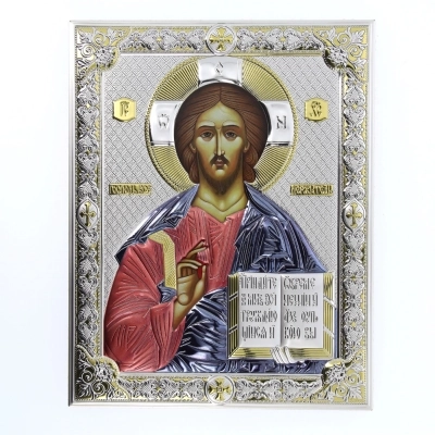 Icona Cristo Pantocratore, in argento. Dimensioni 20x26 cm
