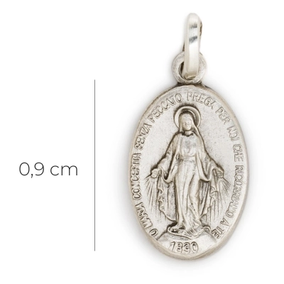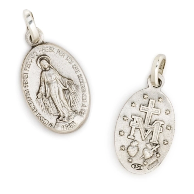 Bellissima medaglia Miracolosa in argento 925, dal peso di 0,7 gr. e altezza di 0,9 cm, riprodotta fedelmente come l'originale, così come apparsa alla veggente Santa Caterina de Labourè nel 1830 a Rue de Bac. La scritta nella parte frontale è in lingua italiana e riporta la seguente frase "O Maria concepita senza peccato prega per noi che ricorriamo a te". La medaglia è dotata di anellino per poter essere appesa ad una catenina ed indossata al collo (catenina non inclusa). La medaglia è estremamente dettagliata e rifinita con cura. Realizzata appositamente per Editrice Shalom, che ne ha seguito direttamente tutta la lavorazione, dalla scultura in plastilina fino alla realizzazione del primo modello. Rigorosamente ideata e prodotto in Italia da un'azienda artigianale e leader nella produzione di medaglie.