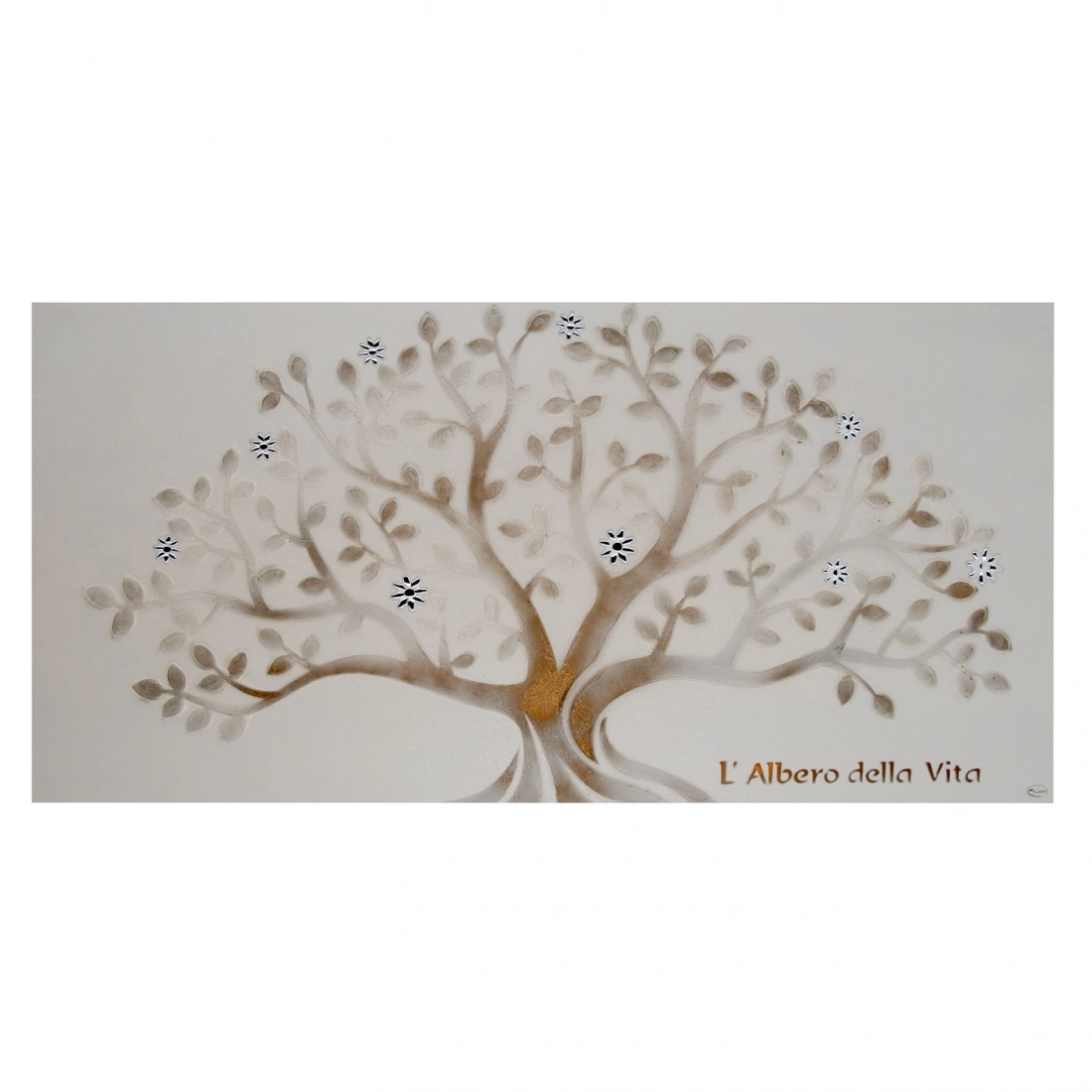 Bellissimo quadro (delle dimensioni di 98x48 cm), decorato su legno, che raffigura l’albero della vita, con particolari in argento. Elegante, imponente, prospero, l’albero della vita è un simbolo ricorrente nelle culture antiche, un simbolo che ancora oggi affascina moltissimo perché rappresenta la nascita e la rinascita. Nella Bibbia era presente come simbolo di una vita esente da preoccupazioni, oggi è un augurio per chi sta per iniziare un nuova vita: si augura che sia intensa e abbia solide radici. Bellissima idea regalo rivolta a chiunque stia per iniziare una nuova fase, un nuovo percorso: per esempio a una coppia che comincia il suo cammino di vita insieme o a chi si appresta a compiere un cambiamento di vita importante. Il design raffinato e i colori pastello lo rendono adatto a tutti gli ambienti domestici.