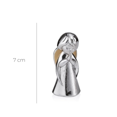 Statua Angelo in preghiera, realizzata in resina argentata con decorazione dei dettagli dorati, che donano movimento al prodotto. Ideale da regalare in qualsiasi occasione per augurare a chi lo riceve la protezione dell'Angelo. Dalle linee morbide, si adatta a qualsiasi tipologia di arredamento dai più classici a quelli più moderni. Realizzato totalmente in Italia da un'azienda leader nella produzione di quadri e oggettistica in argento.