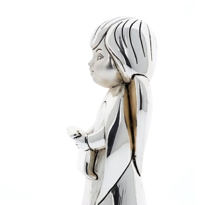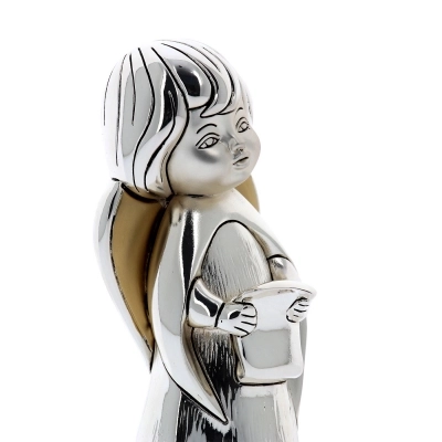Statua Angelo, raffigurato con lo spartito in mano come a cantare, simbolo di gioia e armonia. Realizzata in resina argentata con decorazione dei dettagli dorati, che donano movimento al prodotto. Ideale da regalare in qualsiasi occasione per augurare a chi lo riceve la protezione dell'Angelo. Dalle linee morbide, si adatta a qualsiasi tipologia di arredamento dai più classici a quelli più moderni. Realizzato totalmente in Italia da un'azienda leader nella produzione di quadri e oggettistica in argento.