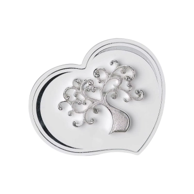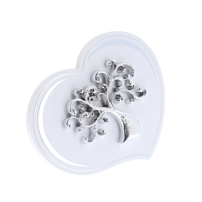 Quadretto in legno bianco con applicazione di una raffigurazione dell'Albero della Vita, simbolo di connessione da noi e Dio, in resina argentata dall'effetto satinato. Ideale da regalare ad una coppia di sposi in qualsiasi occasione. Il quadretto è completo di basetta per poter essere utilizzato come soprammobile in qualsiasi ambiente domestico, ma è dotato anche di forellino sul retro per poterlo appendere. Realizzato in Italia da un'azienda leader nella produzione di quadri e oggettistica da regalo in argento.