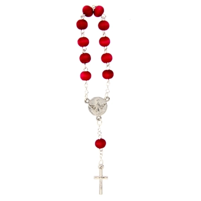Bella, pratica e comoda per la preghiera, questa decina in legno al profumo di rosa è ideale per portarla sempre con sé. Sulla crociera è raffigurata la colomba dello Spirito Santo e il crocifisso è color argento.