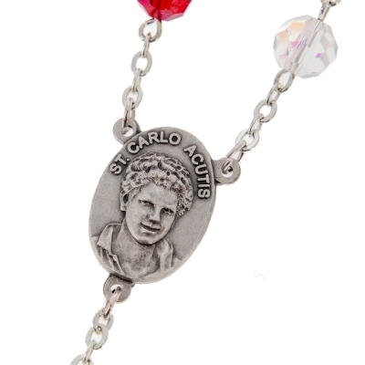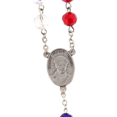 La corona è composta da 3 poste di 5 grani, di diametro 8 mm, in cristallo colorato. Sulla crociera è raffigurato il volto di san Carlo Acutis. Questa coroncina è utile per pregare la Novena a san Carlo Acutis, che si recita in preparazione della festa del santo, infatti si recita dal 3 all'11 ottobre oppure in qualsiasi momento se ne senta la necessità.