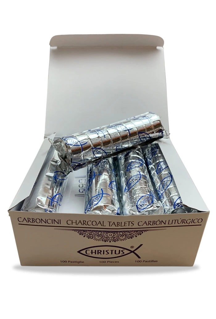 Carboncini per incenso da 33 mm, venduti in confezione da 100 pezzi, in pacchetti da 10 pezzi l'uno. Questi carboncini non fanno fumo, sono inodore e hanno un'accensione praticamente immediata. La durata è di circa 1 ora.