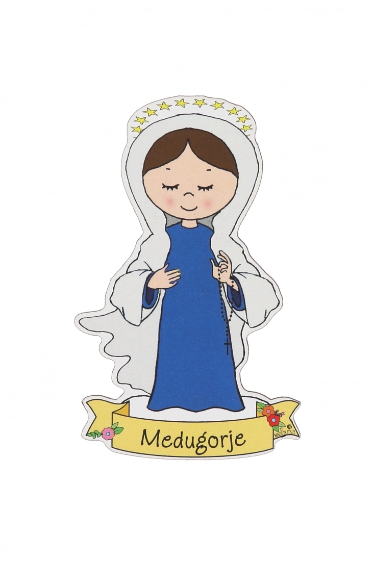 Una linea di calamite colorate e sagomate pensate per i bambini! La Vergine Maria raffigurata nelle sue più famose apparizioni: Fatima, Lourdes, Guadalupe…8 soggetti diversi, ideali per far scoprire ai bambini l’amore dolce di Maria, nostra Madre. Originale idea regalo; è un simpatico souvenir per le basiliche o i santuari dedicati a una di queste apparizioni.