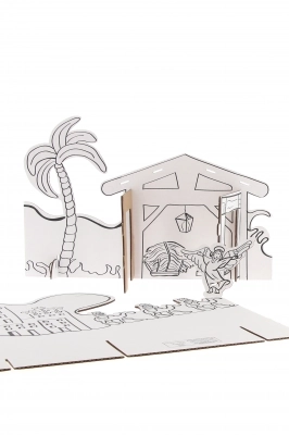 Scatena la fantasia del tuo bambino o della tua bambina con il presepe di cartone ecologico e riciclabile interamente da costruire e colorare senza uso di colla o forbici.