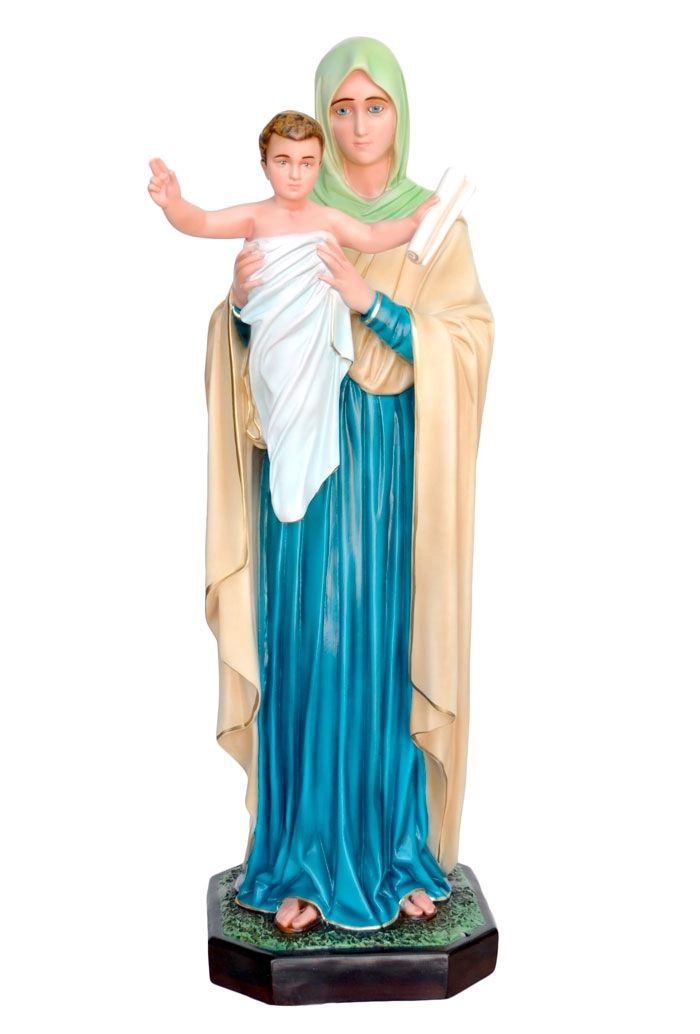 Questa statua realizzata artigianalmente ha un significato importante, rappresenta Maria come Maestra e Regina degli Apostoli con in braccio il Figlio, mentre attende con loro la discesa dello Spirito Santo.