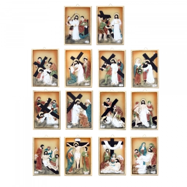 Sacra Famiglia realizzata in resina colorata, dell'altezza di 16,5 cm. Una rappresentazione della natività ideale sia come presepe sia come idea regalo per il Natale. San Giuseppe è rappresentato in piedi con il bastone in mano, la Vergine tiene in braccio il bambino Gesù ed entrambi lo contemplano con amore. I colori tenui, ecrù ed oro, contribuiscono a rendere questa statua bella, delicata e molto originale.