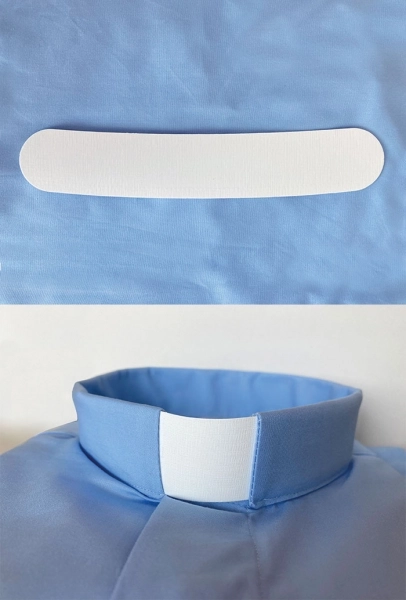 Collarino colletto bianco ecclesiastico clergy realizzato in pvc anallergico. Flessibile e di facile utilizzo, è adatto ad essere inserito in camicie e polo clergy. Dimensioni 16x2,8 cm. Prodotto italiano.