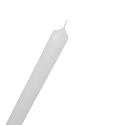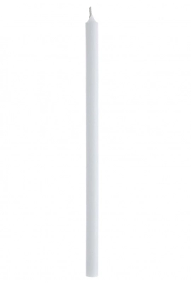 Candela di cera bianca, delle dimensioni di 45x1,5 cm, prodotta da una nota cereria italiana con cera di ottima qualità. Adatta ad essere inserita in flambeaux e da usare per la Candelora