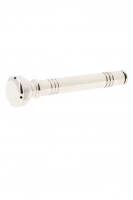 Asperges portatile, delle dimensioni 12,2x2,7 cm, in ottone argentato nichelato con manico liscio e finiture in argento. Molto pratico e comodo da portare con sé.