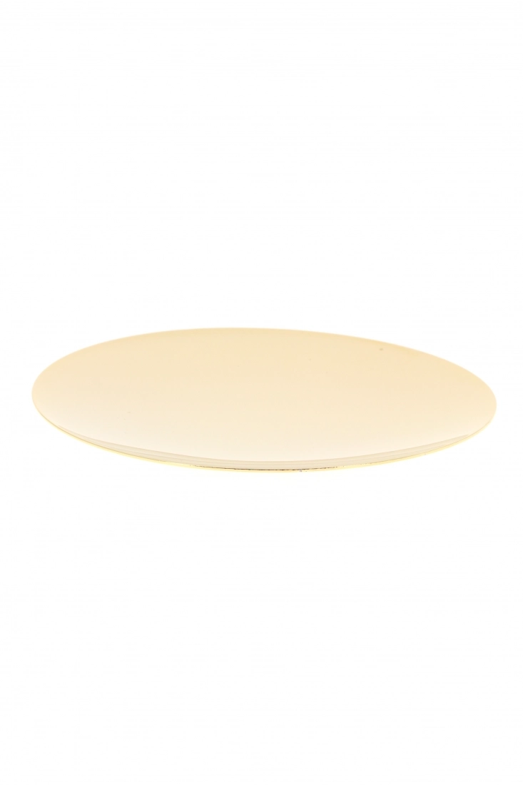 Patena liscia, del diametro di 14 cm, di forma convessa; realizzata interamente in metallo con finitura dorata. È utilizzata per coprire il calice e posare l'ostia.