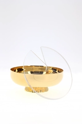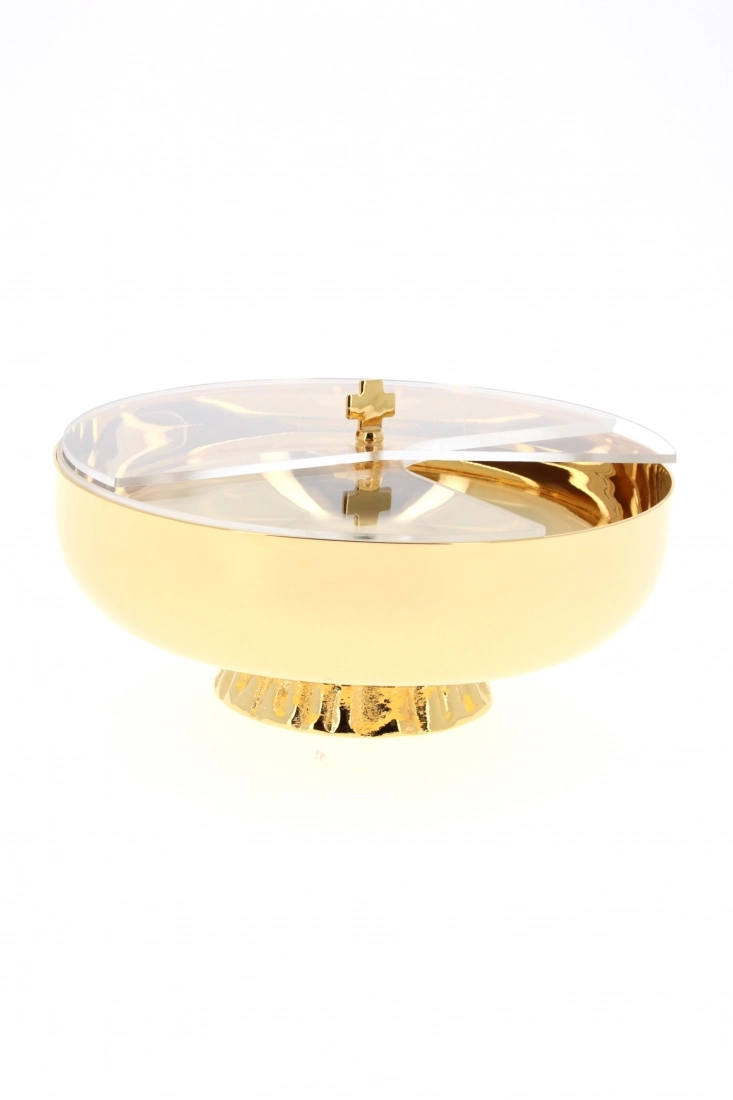 Pisside bassa in ottone dorato (del diametro di 14 cm) con coperchio girevole realizzato in plexiglass molto utile per preservare le particole dalla caduta e per evitare la contaminazione da agenti esterni. La base è decorata, mentre la coppa è liscia. Sul coperchio è posta una piccola croce che funge da maniglia. Può contenere indicativamente 100 ostie.