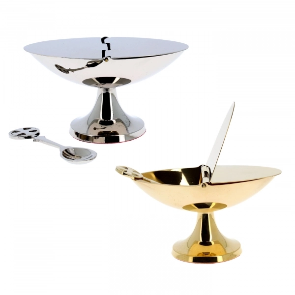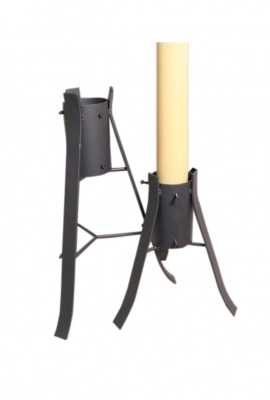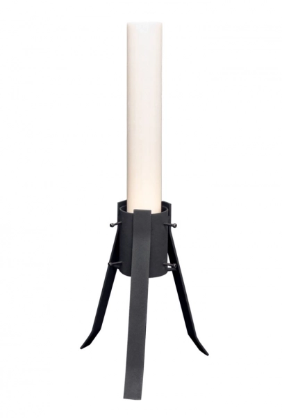 Portacero nero satinato, dell'altezza di 40 cm; può contenere ceri di vario diametro, fino a ceri del diametro di 100 mm. Il portacero è massiccio e dotato di viti regolabili laterali che consentono al cero di rimanere in posizione eretta, qualunque sia il suo diametro.