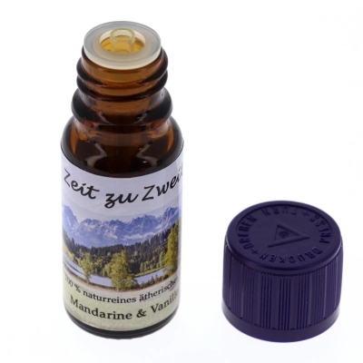 Olio essenziale Mandarino e Vaniglia, dal profumo vellutato, dolce e agrumato. Perfetto per gli ambienti e per la cura del corpo. Confezionato in flacone di vetro da 10 ml.