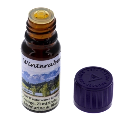 Olio essenziale Tempo d'inverno, contiene aromi tipici invernali, quali arancia, cannella, limone, mandarino e arancia rossa. La profumazione è calda e avvolgente. Perfetto per gli ambienti e per la cura del corpo. Confezionato in flacone di vetro da 10 ml.