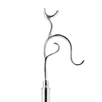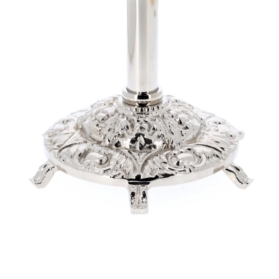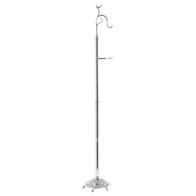Bellissimo porta turibolo in ottone, dall'altezza complessiva di 147 cm. con base riccamente decorata, che conferisce importanza a tutto il prodotto. Il porta turibolo è dotato di due ganci, quello posto più in alto è adatto a ricevere il turibolo, il quale si può appendere grazie all'anello posto in alto al turibolo stesso; mentre il gancio posto subito sotto è utile per poter appoggiarci la navetta. Quest'ultimo gancio lo si può roteare intorno al palo centrale così da poter essere sistemato nella posizione più comoda, per poter trasferire l'incenso dalla navetta al turibolo.