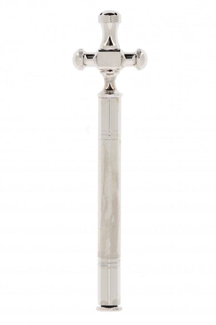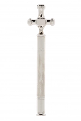 Asperges in ottone argentato, di 20 cm, con custodia. È dotato di un comodo manico per l’impugnatura e presenta una croce all'estremità. Prodotto realizzato in Italia.