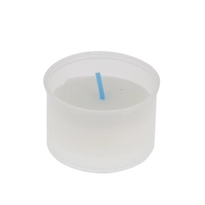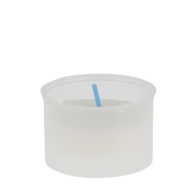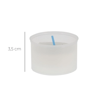 Lumino votivo in plastica trasparente: del diametro di 5,2 cm, altezza 3,5 cm e durata di 8 ore circa. Questo lumino si presta a più usi: nelle chiese è utilizzato come lumino votivo (nei porta lumini); nei cimiteri o, per uso casalingo, come lumino per immagini sacre e altarini. Realizzato in Italia con materiali di ottima qualità.