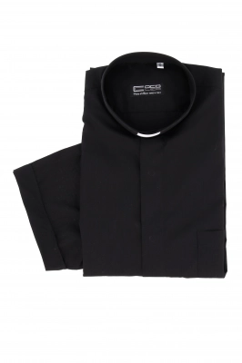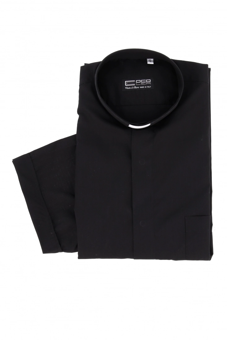 Camicia nera con collo clergy, mezza manica, realizzata in 100% cotone, che garantisce estrema comodità, per la sua morbidezza e traspirabilità ed essendo delicato sulla pelle non provoca irritazioni. Ha una vestibilità ottima e il tessuto garantisce comodità e freschezza. Ha un comodo taschino posto nella parte sinistra, doppio bottone sul polsino e i bottoni posti sul davanti sono coperti dal tessuto della camicia stessa. Realizzata interamente in Italia con materiali di primissima qualità e provenienti dall'Italia o paesi dell'Unione Europea, da un'azienda che cura ogni minimo dettaglio con passione e attenzione.