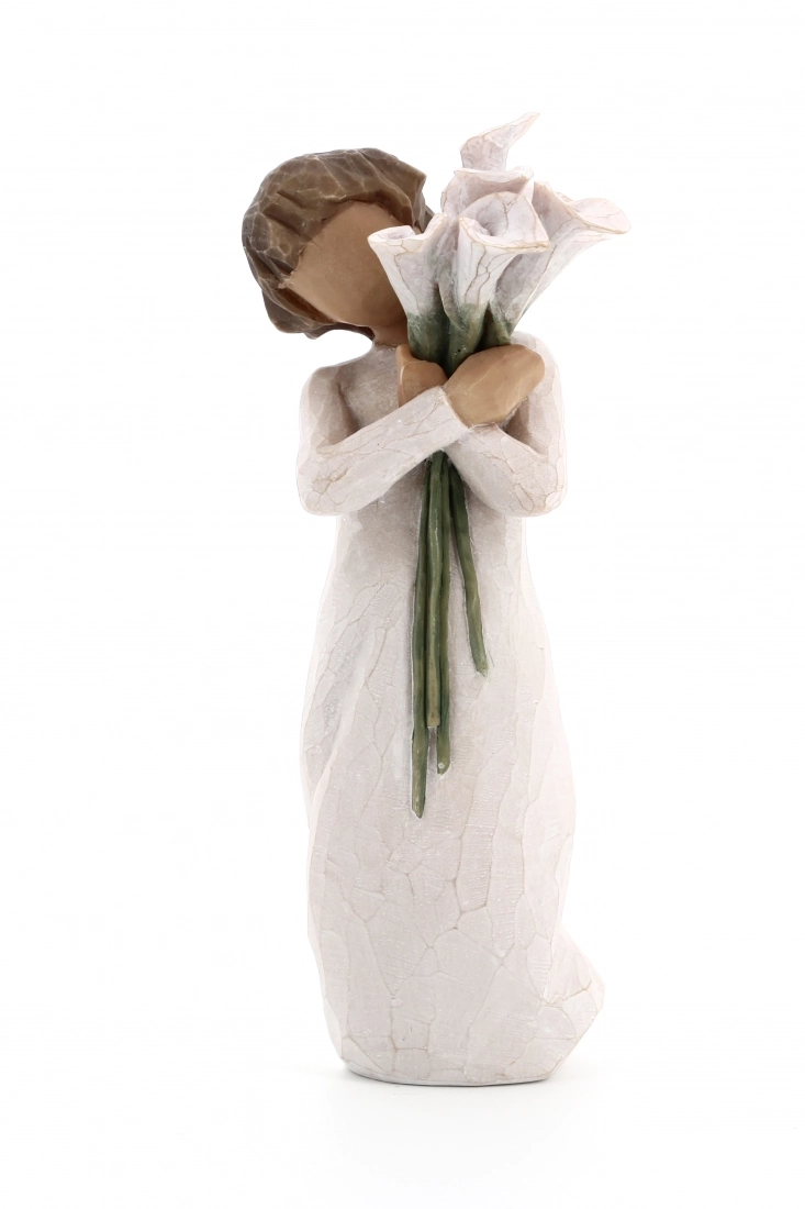 Bellissima statuina The Willow Tree, una linea conosciuta e molto apprezzata in tutto il mondo per la sua semplicità ed eleganza. Queste sculture figurative si caratterizzano principalmente per essere prive di volto e, nello stesso tempo, estremamente espressive. Hanno infatti un fortissimo potere evocativo, ecco perché noi stessi potremo immaginare i volti e le espressioni!