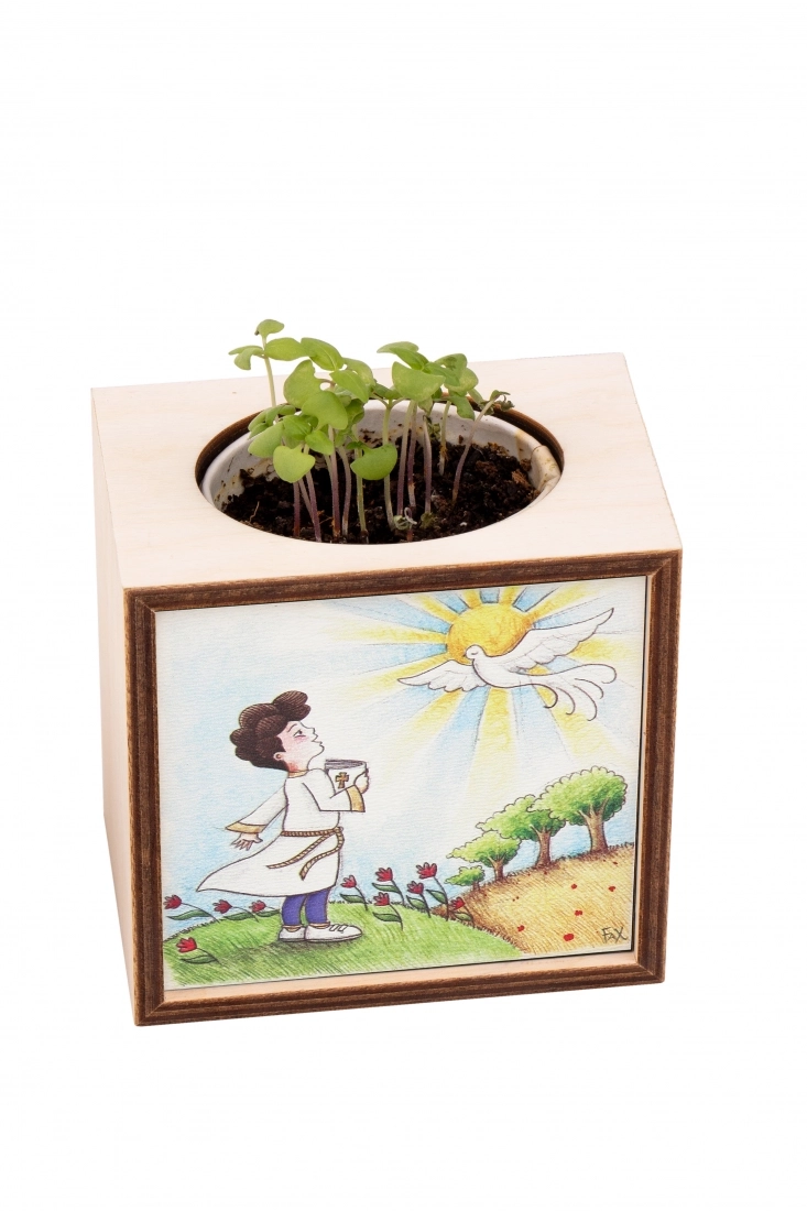 Kodama è un cubo di legno decorato che contiene un vasetto biodegradabile con all’interno del terriccio e dei semi di piante aromatiche e fiori pronti per essere piantati. Perfetto come regalo o come bomboniera, è fatto in legno di betulla che, con le sue leggere venature, dona unicità al prodotto.