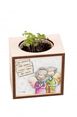 Kodama è un cubo di legno decorato che contiene un vasetto biodegradabile con all’interno del terriccio e dei semi di piante aromatiche e fiori pronti per essere piantati. Perfetto come regalo o come bomboniera, è fatto in legno di betulla che, con le sue leggere venature, dona unicità al prodotto.