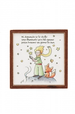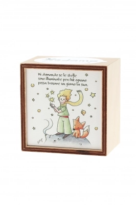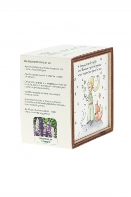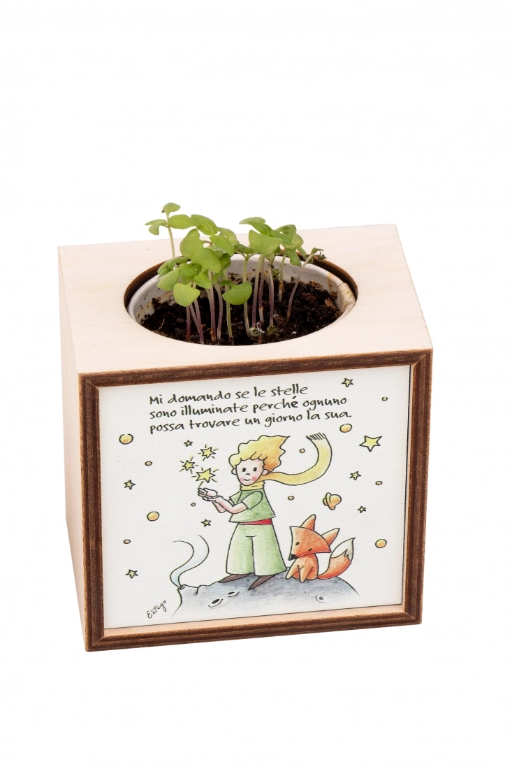 Piantina Kodama in cubo di legno - immagine Piccolo Principe. Dimensioni 10x10 cm