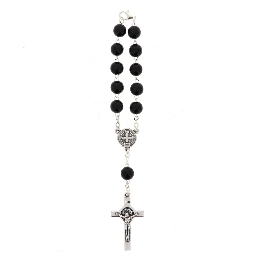 Decina di san Benedetto con grani in legno nero di diametro 8mm e apertura con moschettone. Pratica e comoda da portare sempre con sé in tasca o da indossare come braccialetto. Un'ottima idea regalo pensata per chi è molto devoto o per far conoscere il Santo.
