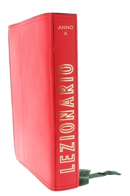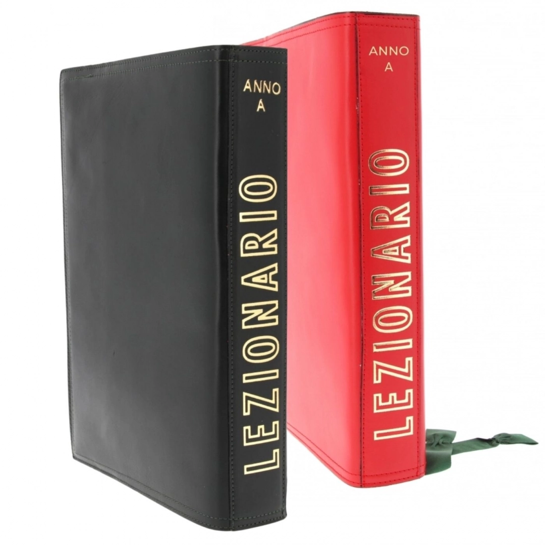 Custodia in pelle ideata e prodotta su misura per il Lezionario, volume feriale, anno A. La custodia è a tinta unita, solo sul dorso ha la stampa in oro a caldo con l'indicatore dell'anno, in questo caso Anno A. All'interno, è rivestita con un'elegantissima stoffa dall'effetto setato ed è completa di due bandelle di 7,6 cm, in pelle, in cui è possibile inserire la copertina del libro, così da rendere più pratica la consultazione. Adatta per volumi con dimensioni 30,5x21,5x6 cm Disponibile nelle colorazioni verde e rossa. Realizzata in Italia da un'azienda artigianale che opera da anni nel settore della pelletteria.