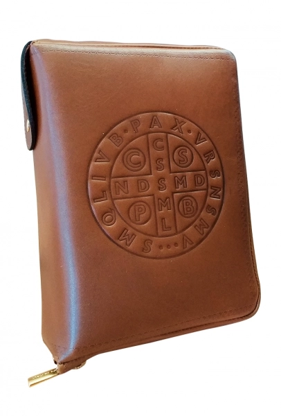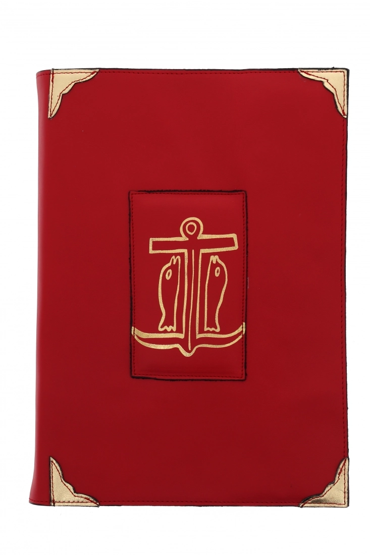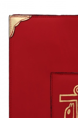 Elegante e raffinata custodia in pelle per Lezionario Feriale (Anno Pari, Anno Dispari e Tempi Forti) e Festivo (Anno A, Anno B e Anno C), decorata con stampa in foglia oro, applicata e cucita sul fronte e sul retro. Gli angoli, applicati e cuciti, sono in pelle dorata. La custodia garantisce la salvaguardia di questo libro prezioso ed è anche un'ottima idea regalo. All'interno, è rivestita con un'elegantissima stoffa dall'effetto setato ed è completa di due bandelle di 7,5 cm, in pelle, in cui è possibile inserire la copertina del libro, così da rendere più pratica la consultazione. Adatta per volumi con dimensioni 30,5x21,5x6 cm. Disponibile nelle colorazioni verde e rossa. Realizzata in Italia da un'azienda artigianale che opera da anni nel settore della pelletteria.