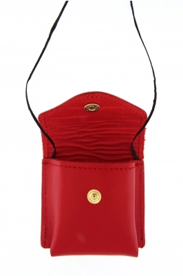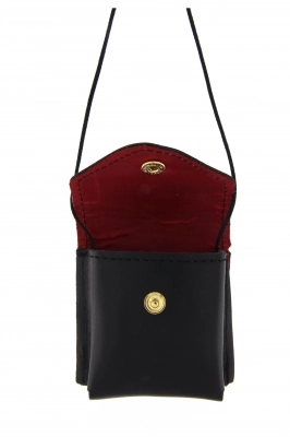 Comodo e pratico portateca in pelle di ottima qualità con stampa in oro, delle dimensioni di 7x7 cm. È dotato di una chiusura centrale e di un cordoncino utile per portarlo appeso al collo. L’immagine ha il solo scopo di illustrare i possibili usi del prodotto, ma il portateca viene venduto vuoto.