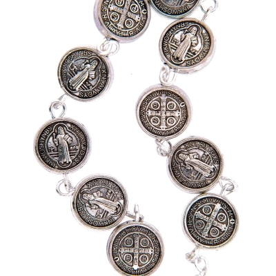 Decina interamente in metallo con medaglie di san Benedetto dal diametro di 9 mm. Piccola, pratica e comoda da portare sempre con sé in tasca. Un'ottima idea regalo pensata per chi è molto devoto o per far conoscere il Santo.