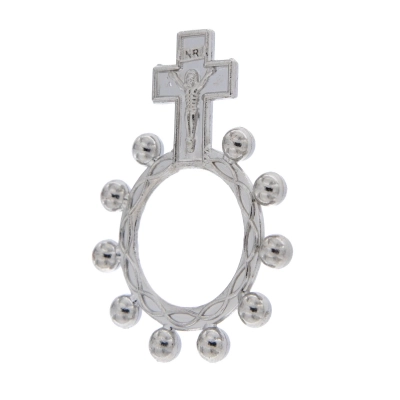 Decina del Rosario in metallo argentato o dorato. Piccola, pratica e comoda da portare sempre con sé in tasca.