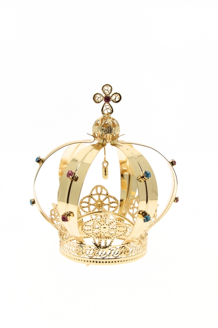 Semplice e raffinata corona in ottone dorato, del diametro di 4 cm, adatta per essere applicata alla statua della Madonna di Fatima. Arricchita con strass colorati e croce posta nella parte superiore della corona. La corona è alta 11 cm e larga 8 cm. È stato applicato all'interno della corona anche il proiettile che rappresenta l'attentato a papa Giovanni Paolo II: egli, infatti, spiegava il fatto di essere sopravvissuto proprio facendo riferimento alla speciale protezione della Madonna di Fatima, tanto che fece incastonare il suo proiettile nella corona originale posta sulla statua della Madonna di Fatima. Prodotto interamente realizzato in Italia da un'azienda di esperti artigiani.