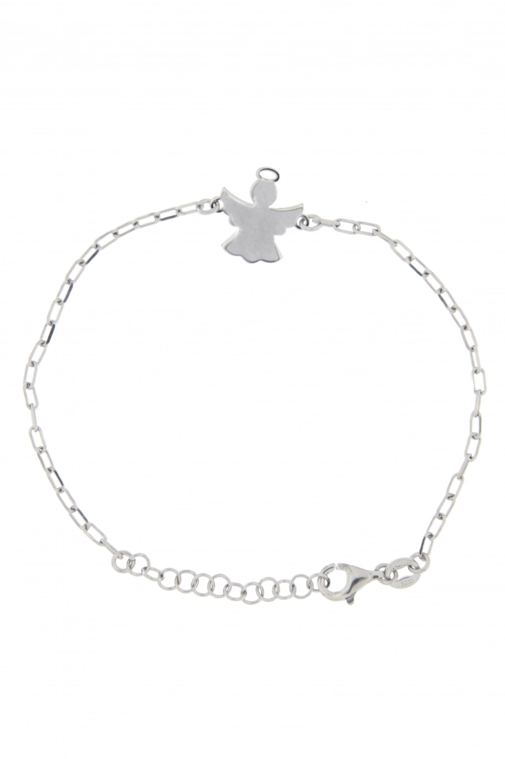 Bracciale in argento 925 (della lunghezza di 17 + 3 cm), realizzato con forzatina rettangolare diamantata e angioletto delle dimensioni di 1x1,5 cm. L'angelo è augurio di protezione per chi lo indossa. Realizzato artigianalmente in Italia per la linea Custodi della Casa Editrice Shalom, è un bracciale molto semplice ed elegante, ideale da regalarsi e da regalare!