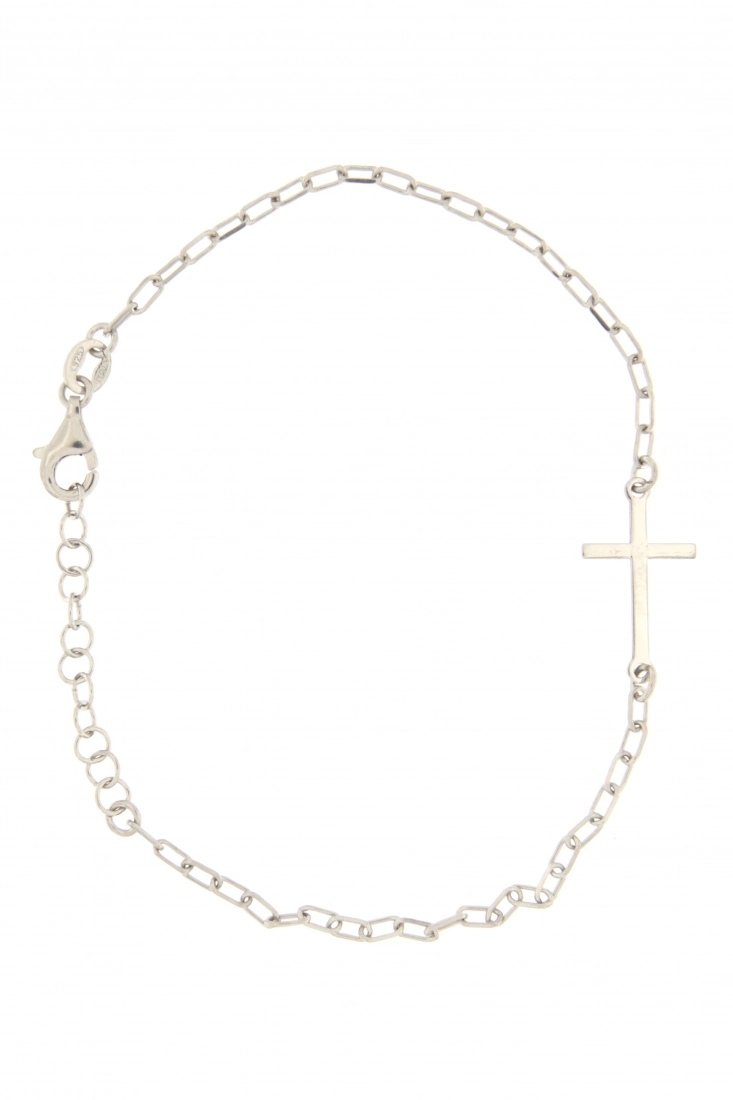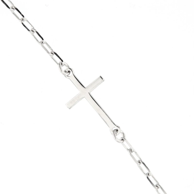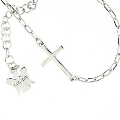 Bracciale in argento 925 (della lunghezza di 17 + 3 cm), realizzato con forzatina rettangolare diamantata con croce liscia delle dimensioni di 1x1,5 cm. La croce, simbolo cristiano per eccellenza, è diventata anche un accessorio molto diffuso, per la sua semplicità ed eleganza, oltre che per il suo profondissimo significato. Realizzato artigianalmente in Italia per la linea Custodi della Casa Editrice Shalom, è un bracciale perfetto da regalare o da regalarsi!