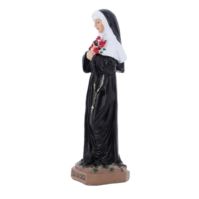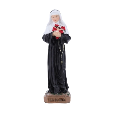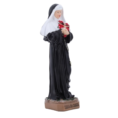 Statua di santa Rita (dell'altezza di 20 cm), realizzata interamente in resina e dipinta a mano. La Santa è rappresentata mentre tiene tra le mani un crocifisso circondato di rose. Santa Rita viene ricordata per la sua capacità di intercedere per cause perse o casi impossibili.