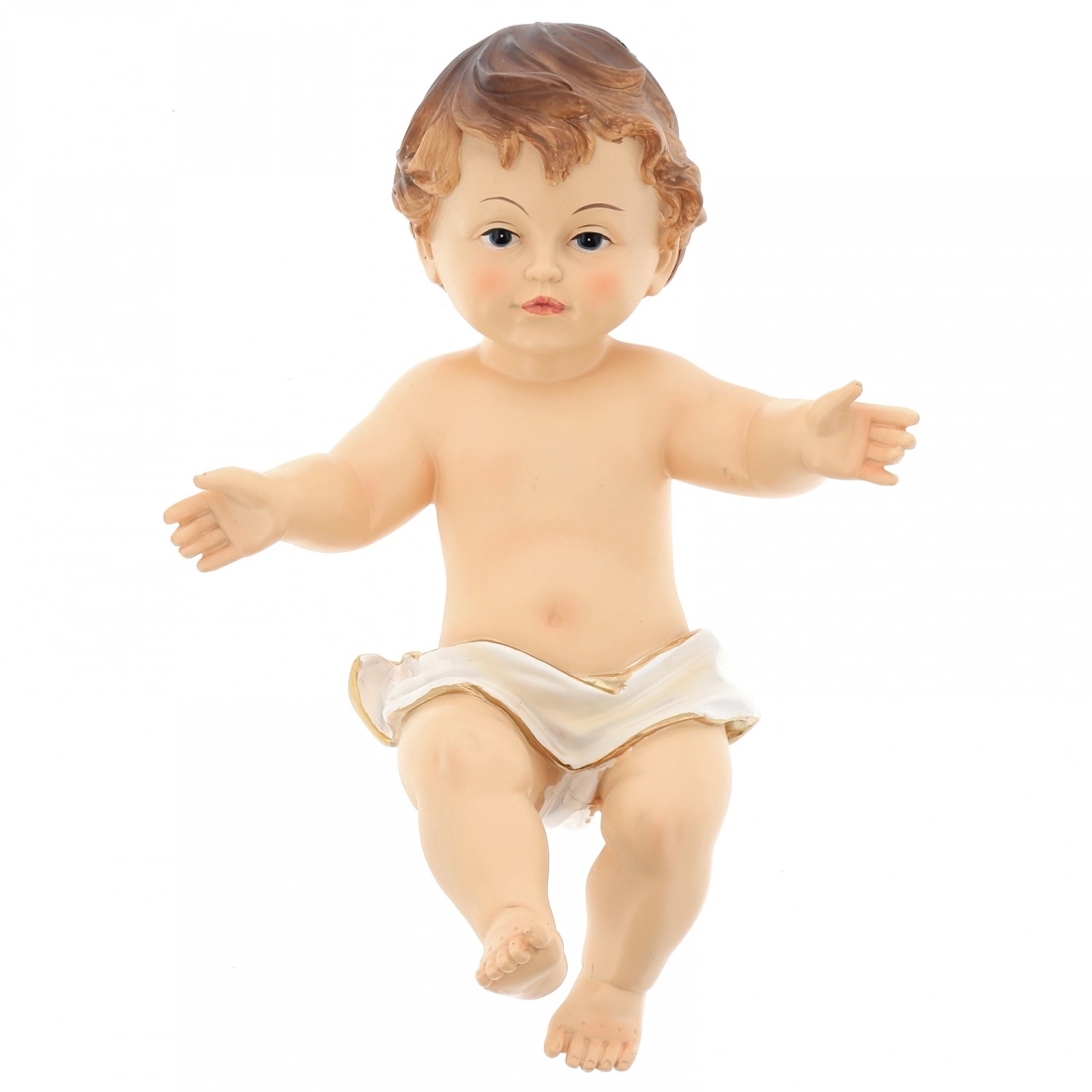 La statua in resina (dell'altezza di 29 cm) rappresenta Gesù Bambino, con le braccia aperte, coperto da un lenzuolino bianco. È un'idea regalo di profondissimo significato ideale per il Natale!