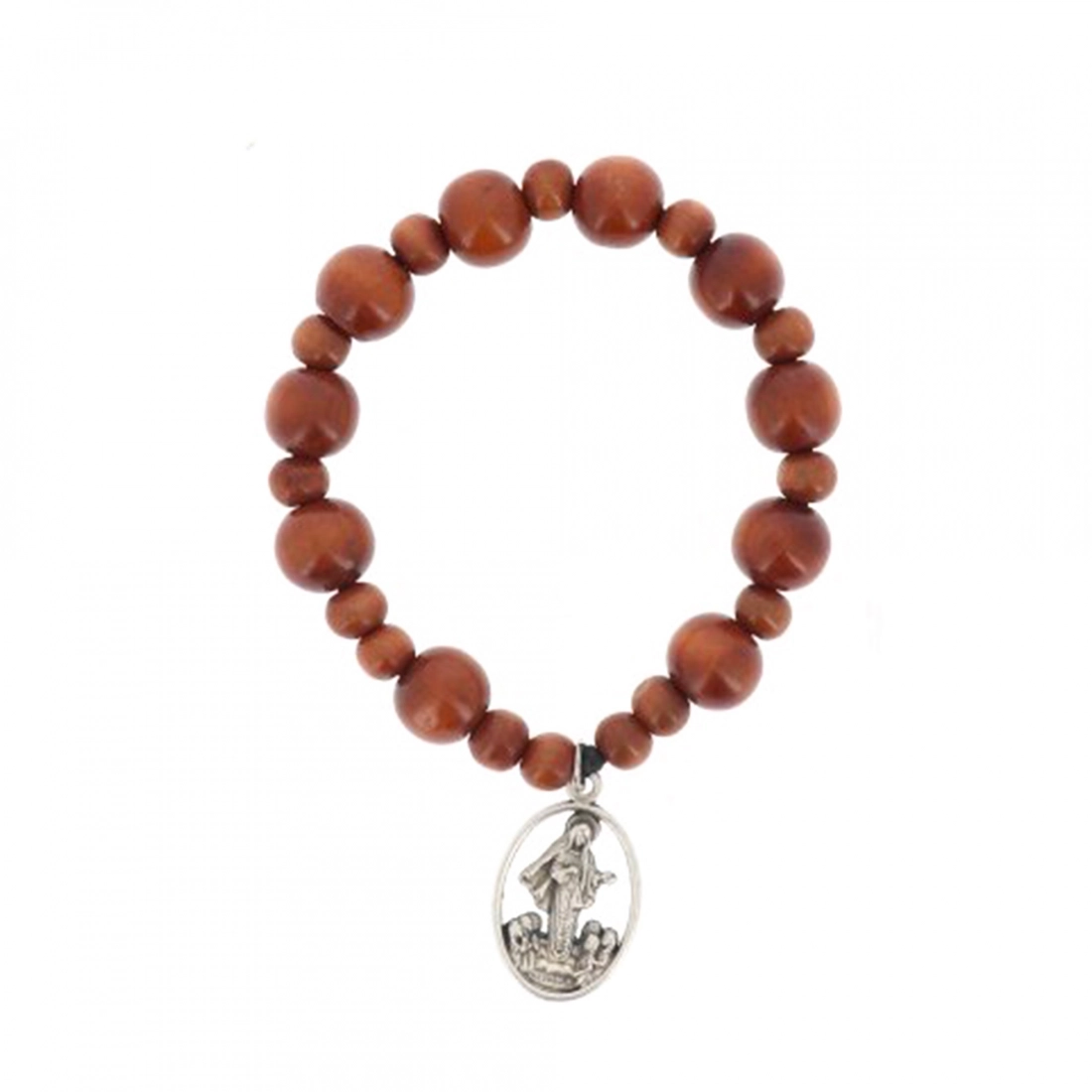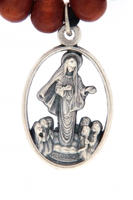 Bracciale decina del Rosario con grani in legno. L'elastico su cui è montato il bracciale è molto resistente. La medaglia posta in fondo al bracciale ha la particolarità di essere forata ai lati e al centro è raffigurata la Madonna di Medjugorje. Carinissima idea regalo anche per uomo.