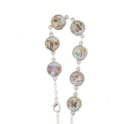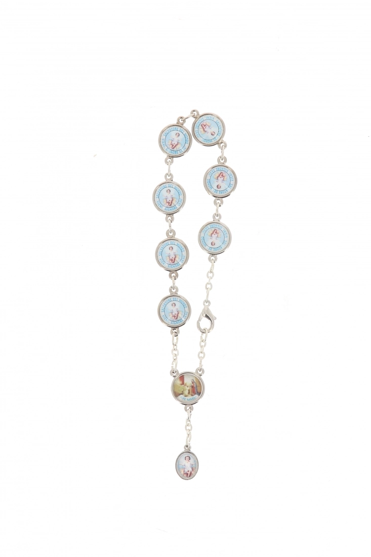 Originale bracciale di Gesù Bambino: ogni importante tappa della vita di Gesù è rappresentata su una medaglia e sull'altro lato della medaglia è rappresentato Gesù Bambino con la scritta: "Vieni, Signore Gesù. Salvatore del mondo". Nella parte finale del bracciale è presente una piccola medaglia ovale con la raffigurazione di Gesù Bambino.