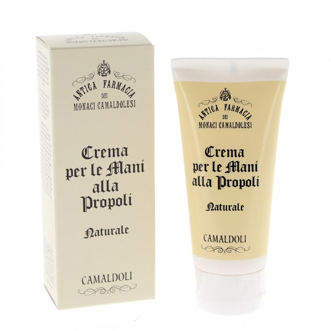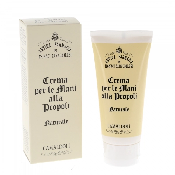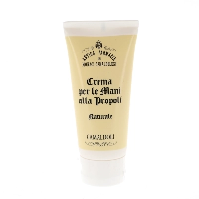 Ottima crema mani, prodotta con sapienza dai monaci benedettini del Monastero ed Eremo di Camaldoli. Gli olii vegetali e l'estratto di propoli rendono questo prodotto efficace nel riparare i danni causati dai detersivi o dagli agenti atmosferici che seccano la pelle. La propoli, inoltre, svolge un'importante funzione antibatterica per le nostre mani. Questa crema non unge, ha un profumo dolce e intenso che permane anche dopo qualche ora dall'applicazione. Dona inoltre una piacevole sensazione di freschezza rendendo le mani vellutate e morbide. È disponibile nella confezione da 50 ml.