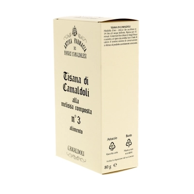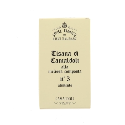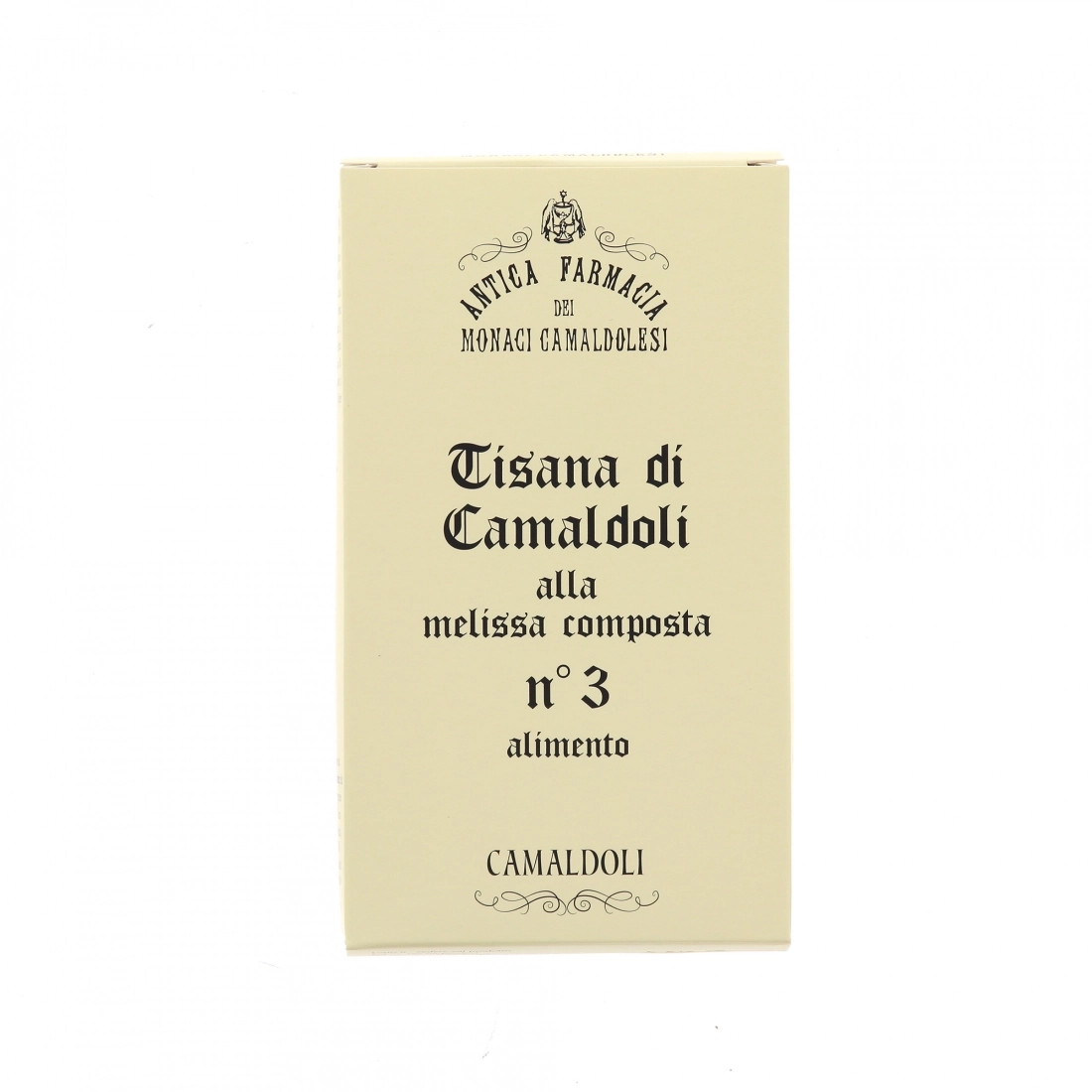 La tisana n. 3 di Camaldoli alla Melissa è indicata per i disturbi di origine nervosa e ansiosa. Un mix bilanciato di melissa, verbena e camomilla, efficace miscela antispasmodica e rilassante, svolge una generica azione calmante. Questo preparato erboristico è utile anche in caso d’insonnia, un rimedio naturale contro lo stress. La Melissa è nota per la sua efficacia nelle somatizzazioni viscerali dell'ansia, avendo un ruolo di antispastico e sedativo. Inoltre, alla Melissa vengono attribuite proprietà carminative, antivirali, antiossidanti e anti-ormonali.